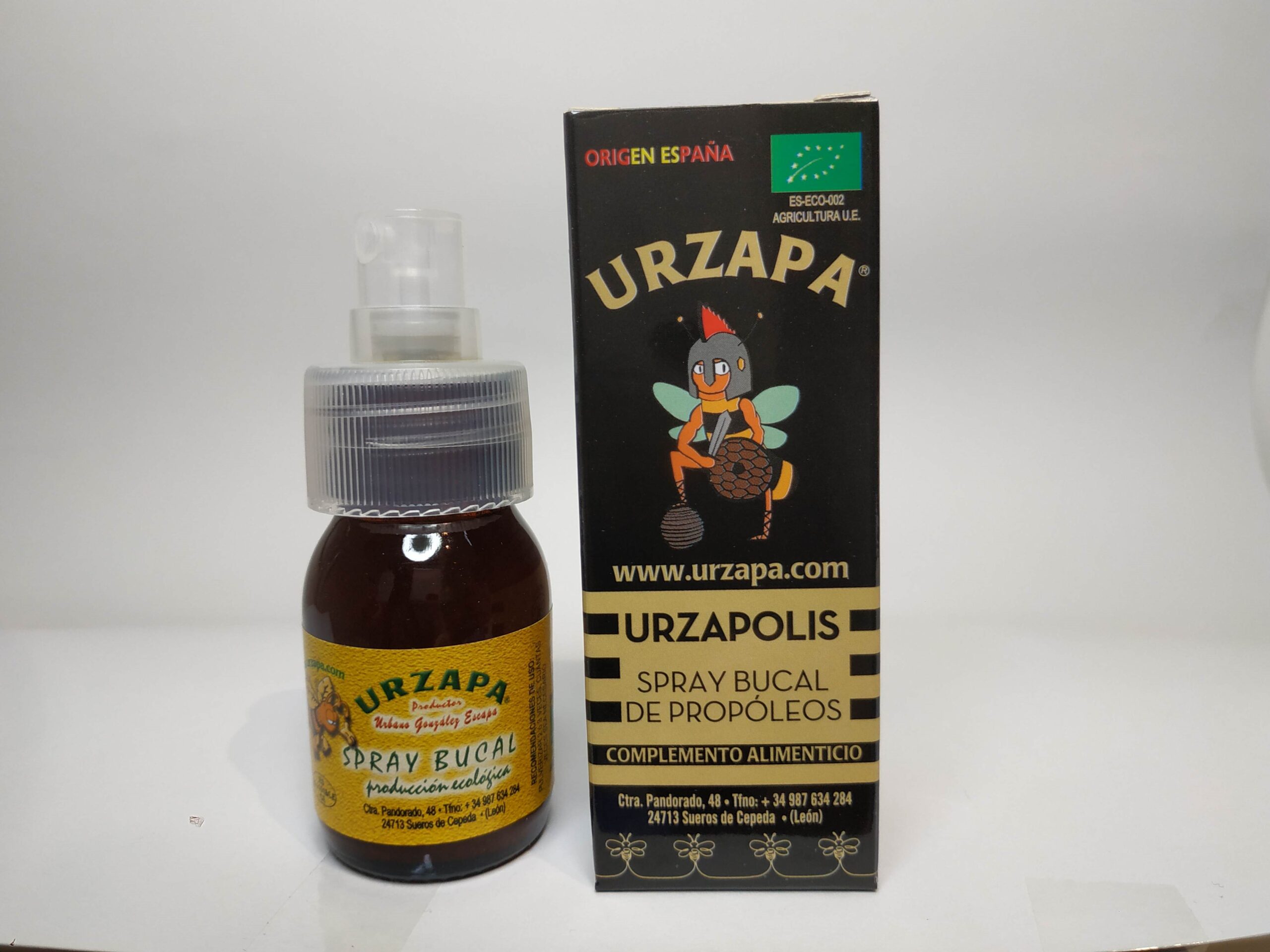 Bote de 30 ml con pulverizador. Composición: Tintura de Propóleos URZAPA (30 %), miel, extracto de malva y de saúco. Esencia de tomillo y eucalipto. CERTIFICADO ECOLOGICO